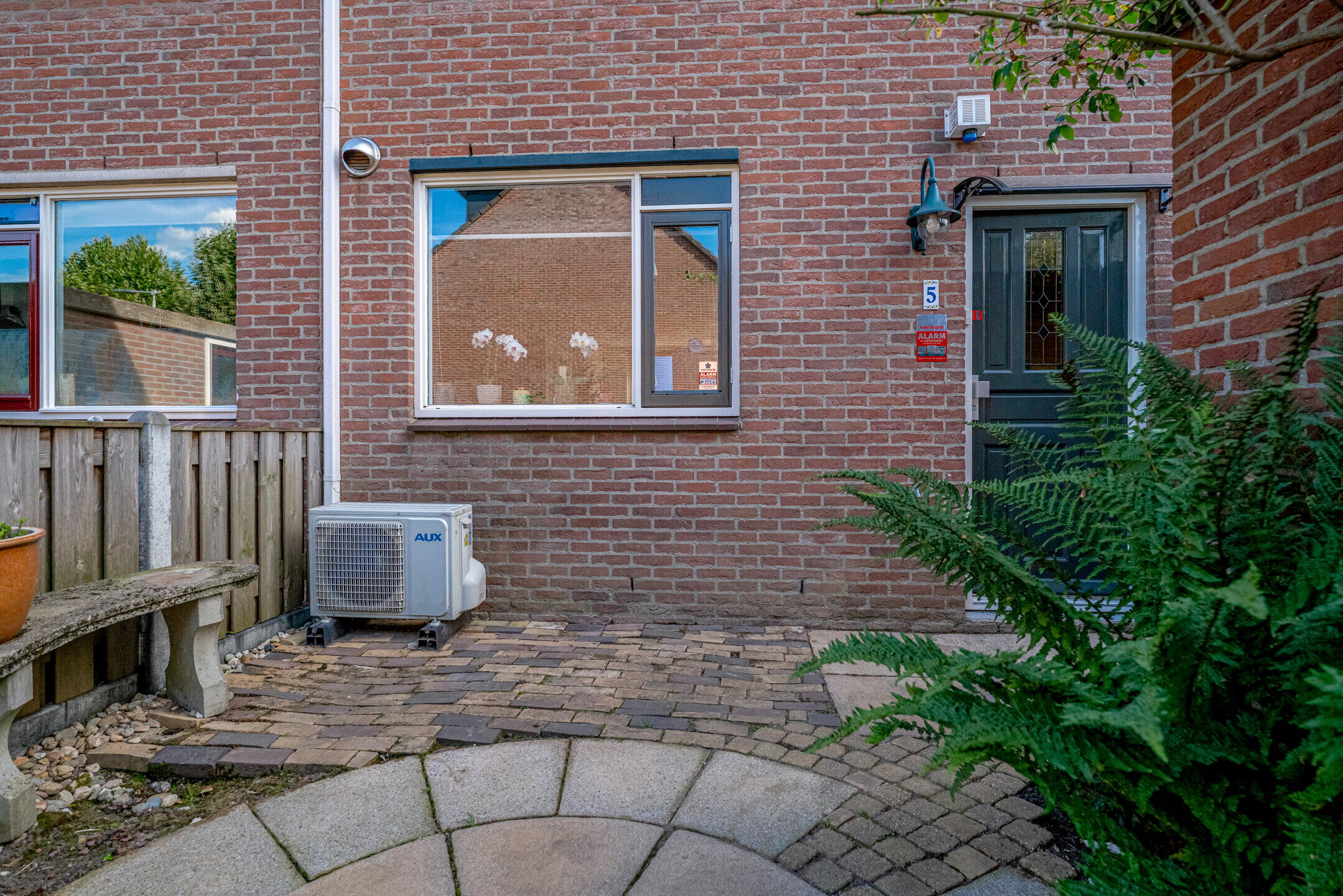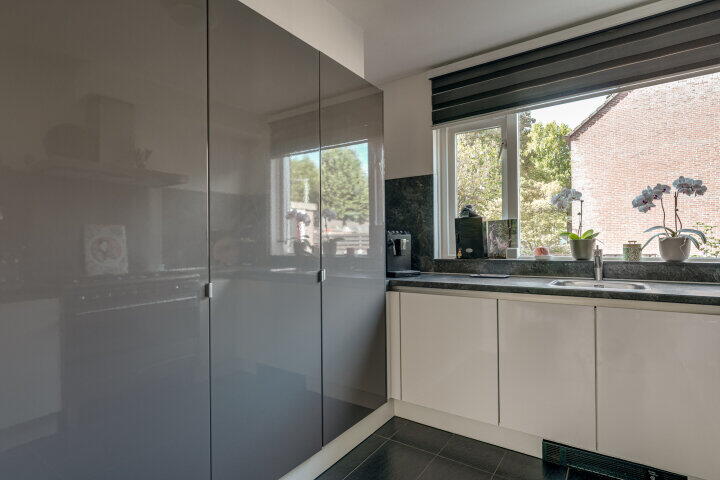 Via de voortuin, voorzien van afsluitbaar hekwerk en een stenen berging, bereik je de entree. In de hal bevinden zich het moderne toilet met fontein, de meterkast en de trapopgang. De tuingerichte woonkamer is licht en ruim en heeft een plavuizenvloer. De open keuken aan de voorzijde is modern uitgevoerd met hoogglansafwerking, greeploze kasten, volop bergruimte en diverse inbouwapparatuur, waaronder een 6-pits gasfornuis met oven, vaatwasser (2020), magnetron, koelkast en vriezer. De woonkamer biedt toegang tot de zonnige achtertuin op het zuiden. Onder de aluminium veranda met ingebouwde verlichting kun je zowel overdag als ’s avonds heerlijk vertoeven.